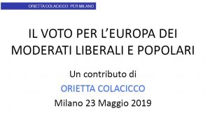 Europeo, costituito da europarlamentari di più paesi, con una sua connotazione precisa, e un’ideologia di un certo tipo. Nel Parlamento Europeo contano i Gruppi e la consistenza numerica dei Gruppi e ad ingrandire il Gruppo non può concorrere solo il buon risultato di un Partito Italiano, bisogna che tutti gli appartenenti al gruppo nei diversi Paesi confermino i dati precedenti o comunque mediamente si ottenga un buon risultato. Rompicapo. No. Basta leggere e confrontare. Ho messo insieme tutti i dati e ho promosso quattro incontri, l’ultimo giovedì 23 Maggio, sul tema “Ragioniamo insieme sul Voto per l’Europa dei Moderati Liberali e Popolari”.