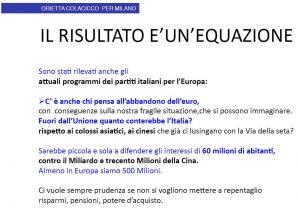 Alla fine, abbiamo tutti insieme i partecipanti tratto le conclusioni. Sovrapponendo domande, risposte e affermazioni, risulta che i moderati liberali e popolari non vogliono scossoni, né stravolgimenti. Vogliono infatti rimanere in Europa, pur volendola cambiare, cioè migliorare, snellendola e innovandola. Sanno che l’Italia da sola soffrirebbe davanti alla concorrenza dei giganti asiatici, ma anche di fronte alla Russia e agli Stati Uniti. Un vero problema per il Made in Italy da difendere.