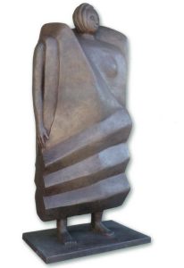 L’opera di Rachele Bianchi, realizzata nel 2014 e collocata per oltre un anno davanti alla facciata di Palazzo del Senato in occasione di una mostra personale dell’artista, rappresenta una donna avvolta in una tunica, simboleggiandone le qualità morali, sociali e culturali. L’artista ha sempre cercato questi elementi nella figura femminile, studiando più che l’aspetto fisico la condizione culturale, i sentimenti, il percorso storico e sociale, con la volontà, che pervade gran parte della sua produzione artistica, di contribuire al riconoscimento dei diritti della donna, tema quasi rivoluzionario negli anni ’50 e di grande attualità oggi.