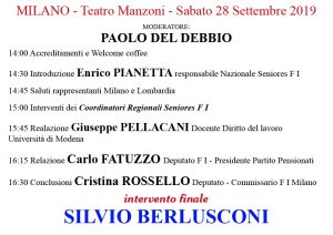 Al Teatro Manzoni i Seniores Nord Italia di F.I. organizzano domani Sabato 28 Settembre il convegno dal titolo “Giù le mani dalle pensioni – Giustizia per 5,2 milioni di pensionati” che, oltre a Paolo del Debbio nelle vesti di moderatore, vedrà la partecipazione di docenti universitari ed esponenti regionali e nazionali di Forza Italia. Chiuderà l’incontro l’intervento finale del Presidente Silvio Berlusconi.