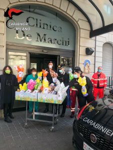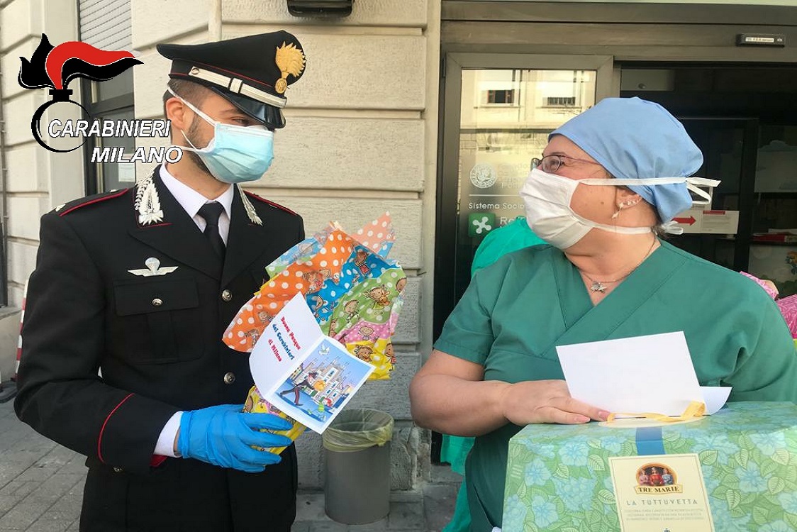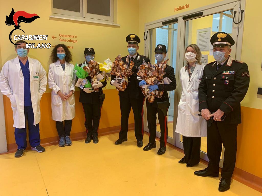 In occasione della Pasqua, i Carabinieri del Comando Provinciale di Milano hanno consegnato oltre 300 uova di cioccolato ai bambini ricoverati nei reparti di pediatria di 8 ospedali di Milano (Policlinico, Niguarda, Buzzi, San Raffaele, IEO, San Carlo, San Paolo, Sacco). Nella circostanza sono state inoltre donate più di 100 colombe al personale sanitario, in segno di ringraziamento per il loro impegno quotidiano.