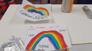 E allora insieme ad un gruppo di famiglie tutte del quartiere di Baggio, abbiamo pensato di portare un po’ di solidarietà e conforto ai nostri volontari della Croce Verde di Baggio, realtà sul nostro territorio del Municipio 7, alla quale siamo molto affezionati tutti. È nata così l’iniziativa “Aggiungi un pasto a tavola“, un circolo virtuoso che vede coinvolte 15 famiglie che a turno, ogni sera, preparano i pasti caldi in vaschette monoporzione, con coperchietti decorati e messaggi di elogio e speranza realizzati dai bambini di ciascuna famiglia. Ogni sera l’Assessore Tiziana Vecchio (Lega) e il Consigliere Walter Moccia (Gruppo Misto) prendono in consegna i pasti dalla famiglia designata e li consegnano alla sede della Croce Verde di Baggio in Piazza Stovani.