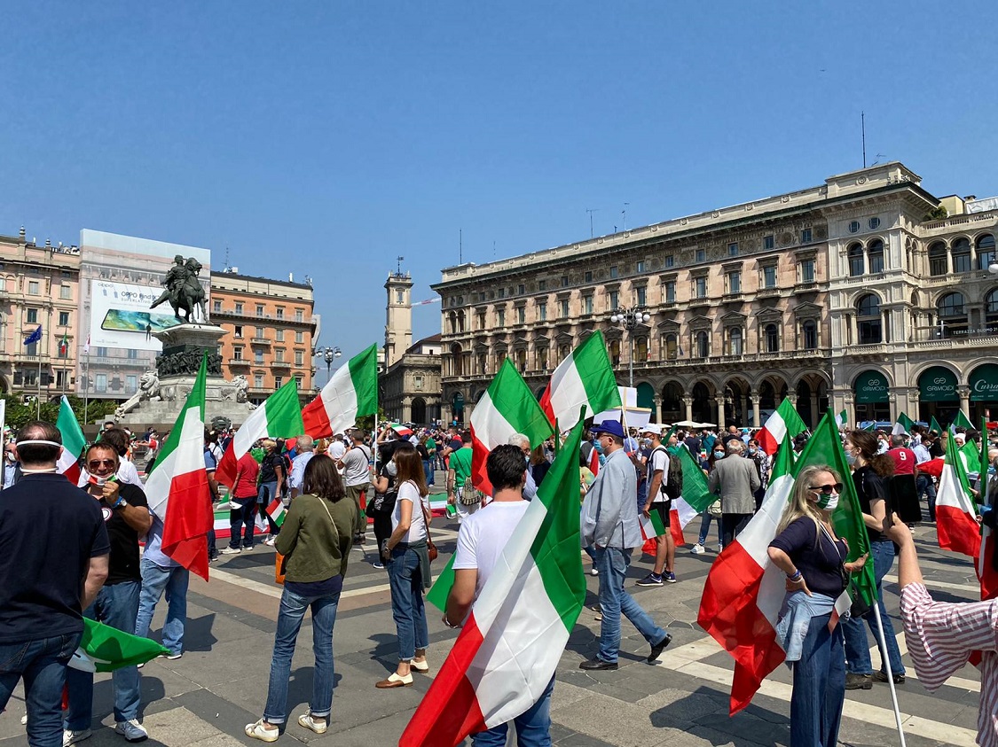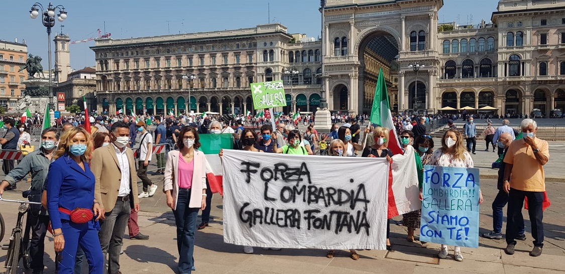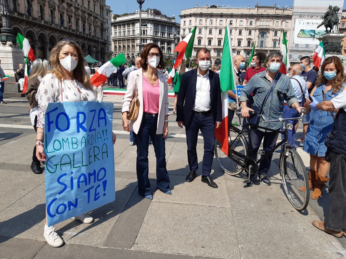 Stamattina in Piazza Duomo ha manifestato un Centrodestra composto con mascherine, distanziamento, pieno di tricolori.