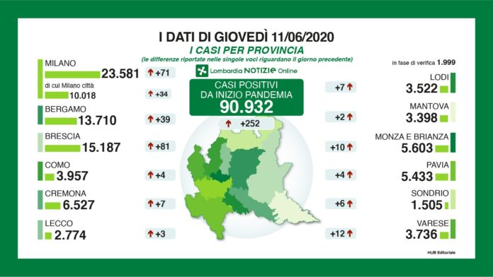 Sono invece 71 i nuovi casi positivi riscontrati ieri a Milano e provincia, di cui 34 a Milano città. I dati sono aumentati rispetto a mercoledì quando i nuovi contagi in tutta la provincia erano 27, di cui 10 in città. Lo comunica la Regione.
