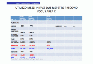 Dal 15 Giugno saranno riaperte le telecamere per l’ingresso in area C. “Perché? E che senso ha in una città ferma, che stenta a rimettersi in moto? A guardarsi in giro gli autobus sono vuoti, le metropolitane poco frequentate, automobili sì ci sono ma non così tante. E’ un’impressione o è così? Per rispondere – dice Orietta Colacicco, Coordinatore Delegato della Commissione Mobilità di Piattaforma Milano – è bene guardare ai dati AMAT”, attraverso i quali cogliere l’andamento della mobilità pre e post covid con l’eccezione dei dati sui mezzi di superficie, non rilevabili. Sono stati esaminati i dati disponibili sul sito, relativi ai giorni lavorativi dal lunedì al venerdì delle ultime settimane considerate, vale a dire dal 18 al 22 e dal 25 al 29 Maggio, e quindi calcolati i valori medi.
