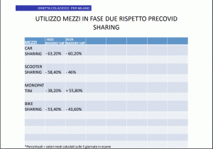 Rispetto al periodo pre covid nella prima, l’utilizzo della metropolitana è mediamente pari al meno 80% che si riduce al meno 77% in quella successiva. Siamo a un utilizzo pari al 20 – 23%, come confermato anche l’11 Giugno in Consiglio Comunale dall’Assessore Granelli. Motivo si dice essere il distanziamento. Ma a guardare meglio i dati, anche perché non ci sono code davanti alle fermate dei mezzi pubblici, si potrebbe pensare che le persone non siano costrette, ma preferiscano spostarsi con altri mezzi, perché ci sarebbe posto per almeno un 7-10% in più. Mezzi che siano biciclette, scooter, monopattini e automobili. E solo un incremento esponenziale di queste potrebbe giustificare la riaccensione delle telecamere di Area C, dove entrano bus turistici, taxi, veicoli assoggettabili al pagamento, veicoli di servizio, residenti. Posto che i bus turistici purtroppo non ci sono e registrano un meno 100%, va analizzato come viene distribuito il peso di ingresso. I veicoli di servizio dal 18 al 22 erano a meno 14%, mentre dal 25 al 29 sono a meno 13%. Il taxi il mezzo sostitutivo per eccellenza non viene assolutamente utilizzato, tanto che passa da un meno 73% nella prima settimana in considerazione al meno 71% nella seconda e va sottolineato che fra mattino e sera c’è una differenza ancora più netta nelle ore serali dove il delta negativo raggiunge anche meno 86%. Una categoria questa da sostenere con la creazione di voucher e di convenzioni per anziani, diversamente abili e operatori sanitari, aspetti sul piatto sia in Regione che in Comune. Vanno invece considerati i dati dei veicoli assoggettabili al pagamento. E partiamo dall’11 Maggio al 15 Maggio, dove si registra un meno 17% totale di cui al mattino meno 6% e la sera meno 53,40% Dal 18 al 22 Maggio si registra nel totale un meno 3,60% in totale, di cui la sera un negativo 35,20%, mentre al mattino già si vede un incremento del più 3,80%; dal 25 al 29 cresce ancora il numero dei veicoli che entrano in area C che toccano un più 4,60% con al mattino più 10,60% e la sera meno 15,80%. Il che vuole dire che sono ingressi di necessità, che si rientra prima dell’ora di punta, che in serata tardi non ci si muove affatto. E ancora é bene analizzare gli ingressi dei residenti: dal 18 al 22 si registra un meno 28% in totale, di cui meno 10,40% al mattino e la sera meno 37,20%. Dal 25 al 29 c’è ancora un meno 24% in totale di cui meno 5,80% al mattino e meno 33,20% la sera. Che vuole dire che ci si muove poco, probabilmente si va a piedi. Che cosa cambierebbe ora prolungare Area C, visto che l’auto è il mezzo considerato in assoluto più sicuro da quei pochi che si muovono? E perché almeno non lasciare questa possibilità alle persone più fragili degli anziani e dei diversamente abili? Stiamo parlando di oggi quando non impattano 150.000 studenti universitari, gli allievi di ogni ordine di scuola, le persone in smart working, i turisti, i visitatori per business, grandi eventi e fiere. Ma bisogna chiedersi perché le persone non si muovono, se non ci sono, o stanno in casa per cautela e prudenza, o perché hanno paura? Questo è il punto, con pregiudizio sul comparto del commercio, della ristorazione, del tempo libero, dei teatri, dei cinematografi. Se il sentimento è questo non si riempiranno i mezzi pubblici, si sceglieranno mezzi individuali, scooter, monopattini, bici. E anche qui lo sharing segna dati da interpretare. Il car sharing è il meno apprezzato e segna fra il 18 e il 22 un meno 63,20% e dal 25 al 29 un meno 60,20%. Lo scooter sharing dal 18 al 22 meno 58,40% e dal 25 al 29 meno 46%. Al contrario piacciono sempre più i monopattini che passano da meno 38,20% dal 18 al 22 Maggio al più 55,80% dal 25 al 29. Il bike sharing non riscuote un grande consenso e dal 18 al 22 segna un meno 53,40% che si riduce a meno 43,60% dal 25 al 29. Sarebbe interessante capire se i 6.000 ciclisti che percorrono la ciclabile Corso Venezia Buenos Aires usano biciclette di proprietà o in sharing. Comunque non si può pensare che 6.000 ciclisti risolvano il problema di Milano. Le piste ciclabili possono, se fatte bene, migliorare la situazione e alleggerire il traffico, ma bisogna calcolare che a Milano piove per 119 giorni all’anno, che non stiamo parlando del movimento di 10.000 persone ma di 1.190.000 persone, che sarebbero lasciate a terra dai mezzi pubblici, visto che in città la metropolitana trasporta 1.200.000 passeggeri al giorno e i mezzi di superficie 500.000 per un totale di 1.700.000 e Trenord 600.000 passeggeri al giorno. Bisogna valutare anche il loro costo e considerare che lo stanziamento per le ciclabili verrà sottratto da quello per la riparazione delle buche, che era, visto l’alto numero degli interventi di manutenzione prevedibili, di quarantanove milioni di euro, poi già ridotto del 20%. Le ciclabili sono in sola segnaletica, come Corso Venezia, Buenos Aires, Viale Monza, in struttura e in segnaletica, come da Legioni Romane a Berna e Zurigo e in struttura in Via Monterosa da Piazza Buonarroti a Piazza Amendola. Sono “solo” 35 chilometri, ma sarebbe opportuno avere un’idea precisa del costo finale. In sola segnaletica le ciclabili costano euro ottomilacinquecento al chilometro, in struttura duecentocinquantamila, ma non si sa quanto costano quelle miste. Quindi non si capisce di quale spesa si sta parlando. Da circa trecentomila euro a quanti milioni? Così quante buche rimarranno come sono, mettendo a rischio proprio gli scooteristi e i ciclisti, che, secondo i dati ACI Istat 2017 da noi presentati, negli incidenti stradali con lesioni gravi causati da buche sono il 64,76% i primi e nel 18,21% i secondi?