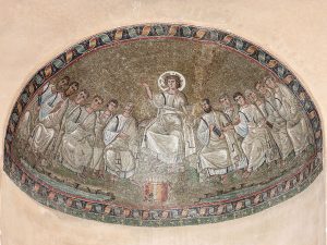 Il fulcro è ruotato attorno al restauro dei mosaici. Questi capolavori anticamente impreziosivano le quattro pareti dell’atrio della cappella, raffigurando la Gerusalemme celeste. Le porzioni che si sono conservate hanno permesso di ricostruire l’organizzazione dell’intero ciclo musivo, distribuito su due registri, con figure a grandezza naturale dei patriarchi di Israele, degli apostoli e dei martiri, ciascuna inquadrata da pilastri dorati tempestati di gemme. Nel registro superiore dell’atrio, sopra l’ingresso, sei iscrizioni conservano i nomi degli Apostoli Giovanni, Filippo, Bartolomeo, Matteo, Giacomo e Giuda, dei quali restano i piedi e i lembi inferiori delle vesti su fondo aureo. Nell’aula ottagonale anche le nicchie e la porzione superiore delle pareti erano occupate da un ciclo musivo di cui sopravvivono però solo due scene nei catini delle nicchie semicircolari. L’esame da vicino dei mosaici ha permesso di riconoscere varie mani, come nel catino della nicchia a destra nel quale si distinguono diverse maestranze.