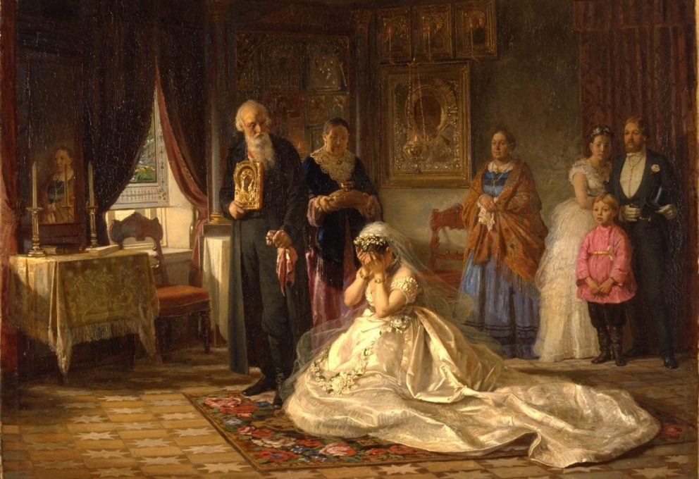 “LA FAMIGLIA – Rituali e convenzioni”: fino all’inizio del Novecento in Russia le donne erano subordinate a rigide norme patriarcali che prevedevano, tra l’altro, la più rigorosa purezza fino al matrimonio. In questa sezione sono presenti alcune opere di denuncia dell’ingiusta e spesso umiliante condizione delle donne. Condizioni che cambiano, nella sostanza e nella rappresentazione, dopo la Rivoluzione del 1917, quando le donne ottengono la parità dei diritti e le lavoratrici si trasformano in eroine.