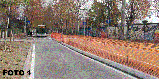 Nella FOTO1 & FOTO2 potete vedere chiaramente come ci sia la precisa volontà di creare ingorghi, infatti non è stato ricavato uno spazio per la fermata dell’autobus, bensì la si è ingabbiata di proposito.