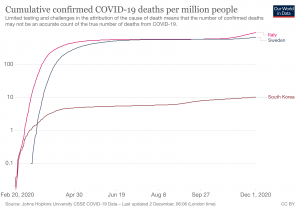 Decessi per milione d’abitante in Italia, Svezia, Sud Corea
