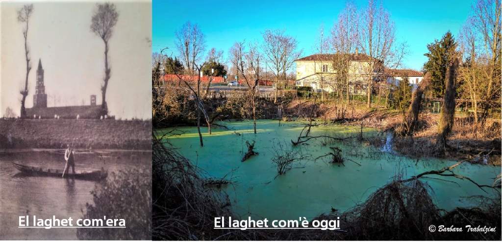 Purtroppo versa in pessime condizioni, e non è l’unico apparato rurale disastrato di Chiaravalle. Sotto vediamo com’è ridotta la bellissima cascina Gerola, proprietà comunale, anche questa plurisecolare. Qui a fianco vediamo il “laghetto”, che in realtà è un vasto fontanile navigabile, come ne esistevano una volta. Ecco come si presenta oggi e com’era 100 anni fa. Mai pulito da anni.