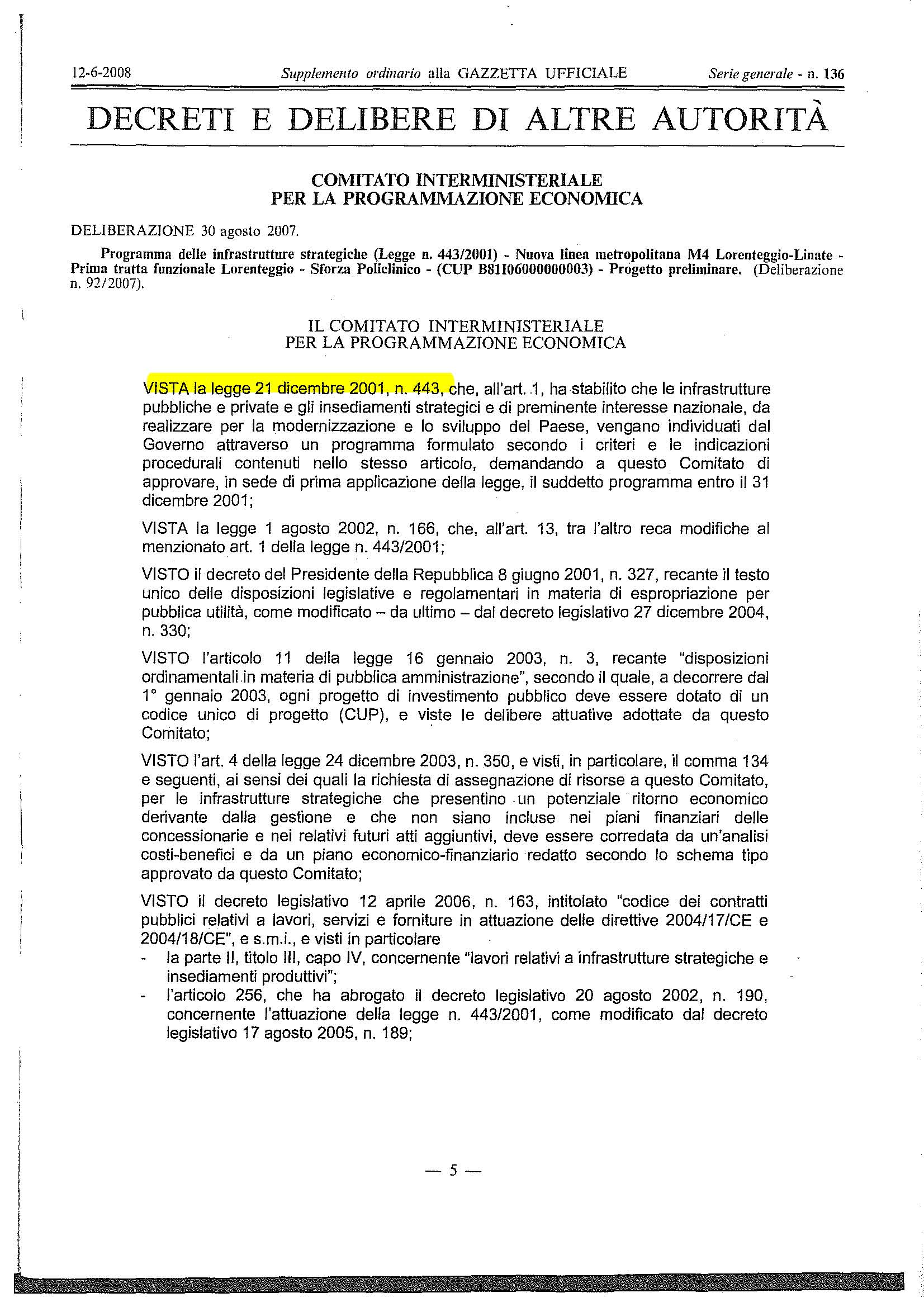 Le firme sono del Segretario Generale del Cipe Fabio Gobbo e del Presidente Romano Prodi.