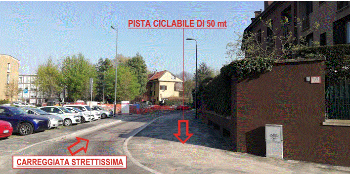 La ciliegina sulla torta, sicuramente il loro alibi, è la realizzazione di una pista ciclabile, e quindi un altro restringimento in Via Carlo Osma, per ricavarla, e udite, udite, una cinquantina di metri di pista ciclabile, cinquanta metri se tutto va bene! Capito?!