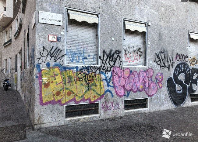 Passeggiando per la desolazione delle vie di Città Studi, intorno al Politecnico, che tutti ci ricordiamo piene di vita e di studenti fa ancora più effetto vedere  il degrado di via Compagni, una delle più devastate dalle scritte vandaliche, come sottolineano l’articolo e il servizio fotografico di Urbanfile.