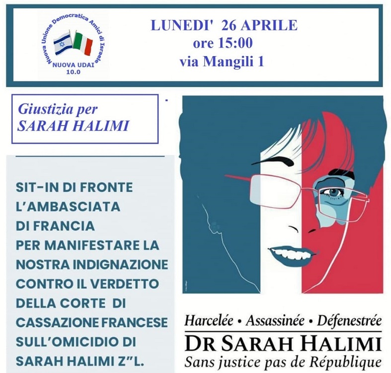 Oggi, lunedì 26 aprile alle ore 15.00, la Nuova Udai organizza una dimostrazione di protesta per il caso Halimi davanti al consolato Francese di Milano in via Mangili 1, . Siete tutti invitati a partecipare !