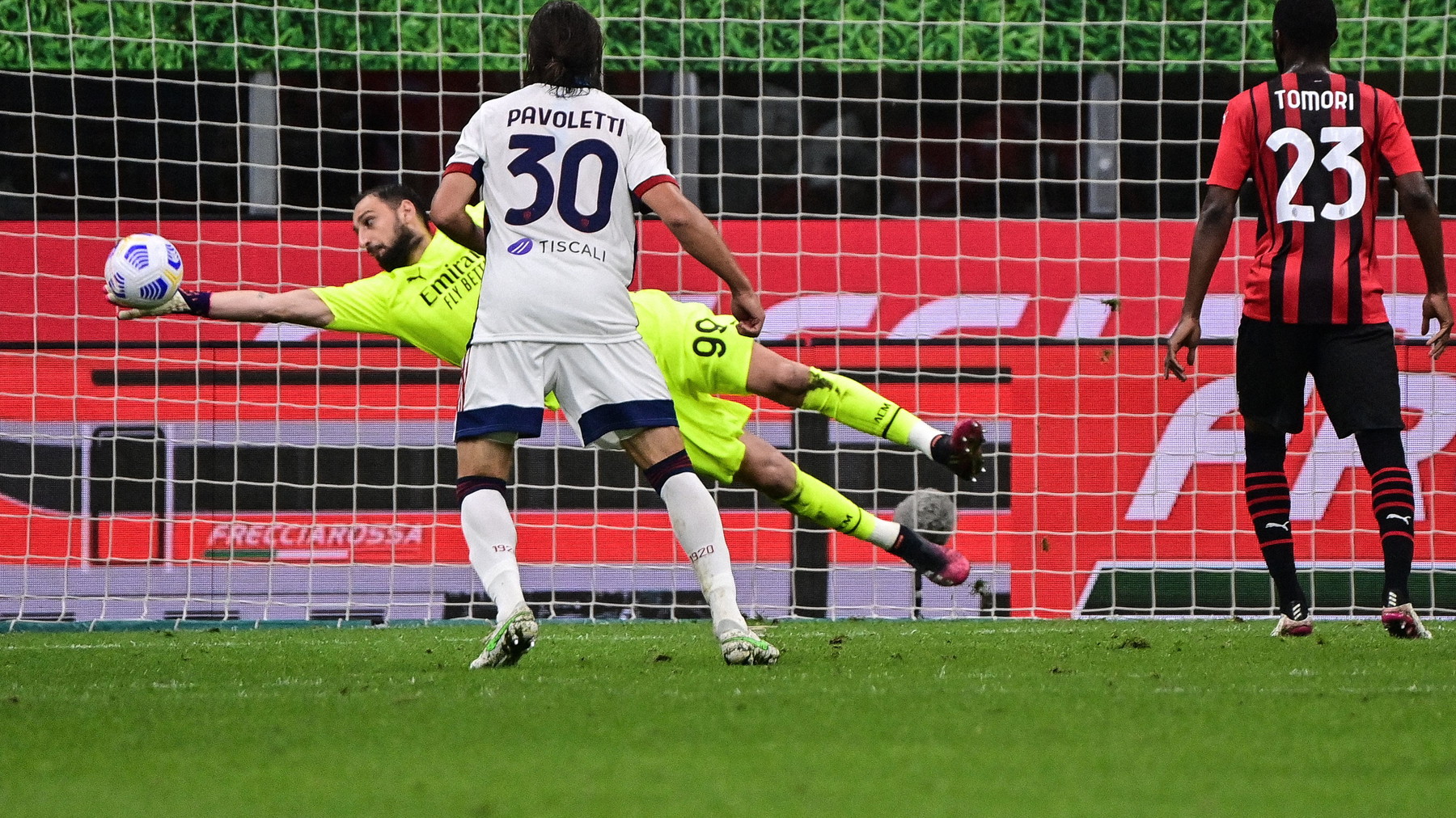 E non sarà facile, visti i precedenti. Nell’immagine, una delle parate di Donnarumma, nel finale, che vale quanto un gol ma frutta soltanto un punto.