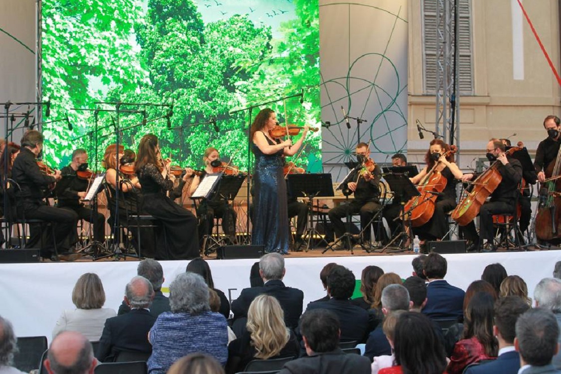 Un nuovo futuro che potrebbe passare anche attraverso la «realizzazione di un centro di alta formazione artistica e musicale proprio qui, in Villa reale», ha accennato l’assessore regionale all’Istruzione, Università e Ricerca, Fabrizio Sala, che ha anche confermato la candidatura della reggia a Casa Italia per le Olimpiadi Milano – Cortina 2026 . «Abbiamo voglia di rinascere – ha aggiunto Sala – e sono certo cha la Brianza e Monza possano essere protagoniste di questo rilancio nazionale e non solo». L’ingresso dei musicisti è stato preceduto da un commosso omaggio a Carla Fracci, scomparsa lo scorso 27 maggio, che nel 1969 fu madrina a Monza del Concorso internazionale delle rose. Il tramonto ha illuminato l’inizio del concerto “Le otto stagioni”, un omaggio imprevedibile e originale ad Antonio Vivaldi e Astor Piazzolla. Regina della serata è stata Agnese Ferrarro, violino solista che ha incantato il pubblico. Un colpo di vento in una serata graziata dal maltempo (annunciato) ha strappato anche un sorriso proprio alla Ferraro. «Questo è il bello dei concerti all’aperto – ha detto mentre raccoglieva gli spartiti soffiati via dalla brezza – capita anche questo, ma va bene così, ci mancavano gli imprevisti degli spettacoli dal vivo».