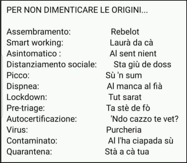 Ma non dimentichiamo le origini Dal sito Dialetto Milanese