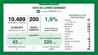 I nuovi casi in Lombardia sono stati 671 a fronte di 41.476 tamponi per un rapporto dell’1,9%. Non si sono registrati nuovi decessi.
