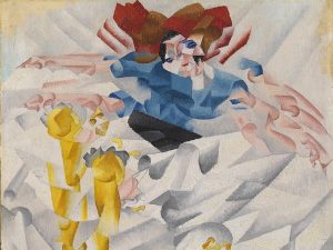 La saletta all’ingresso, prima dedicata alle avanguardie europee del Primo Novecento, è trasformata in uno spazio aperto che introduce la poetica futurista grazie all’esposizione di Manifesti Futuristi – fondamentale strumento di diffusione delle idee e della grafica futuriste – e di importanti lavori su carta di Antonio Sant’Elia e Giacomo Balla. Una videoinstallazione rimanda al clima sperimentale dei primi trent’anni del Novecento, con importanti estratti di cinema futurista e d’avanguardia.  I capolavori futuristi sono esposti considerando non solo l’evoluzione tecnico-pittorica dei Maestri del periodo, ma anche la vicinanza tematica e stilistica delle loro opere. Il percorso, che vede esposti capolavori di Umberto Boccioni, Carlo Carrà, Giacomo Balla e Gino Severini, per indicare i più importanti, si arricchisce delle opere della collezione Antognini Pasquinelli, quattro dipinti esposti per la prima volta in questa occasione: Crepuscolo di Boccioni, Paesaggio toscano di Severini, Velocità d’automobile + luci di Giacomo Balla e un ritratto di Mario Sironi, Figura futurista (Antigrazioso). Le opere sono poste in dialogo con i capolavori futuristi delle collezioni civiche, cresciute negli anni grazie all’incontro tra accorte politiche collezionistiche pubbliche e private.  La Galleria segue due racconti paralleli: mentre la parete principale testimonia con indiscussi capolavori le sperimentazioni pittoriche degli artisti intorno ai temi tipici da loro prediletti – i soggetti di vita urbana, la bellezza del movimento e della macchina, l’entusiasmo patriottico – le opere dell’altra parete, negli spazi tra le colonne, raccontano la pittura e la scultura futuriste attraverso soggetti tradizionali come la figura e la natura morta. La sala si chiude con il celebre bronzo boccioniano Forme Uniche della Continuità nello spazio (1913) che sfida i limiti di pesantezza e staticità della materia attraverso la celebrazione del moto che si estende dal corpo nudo in cammino allo spazio che lo contiene.