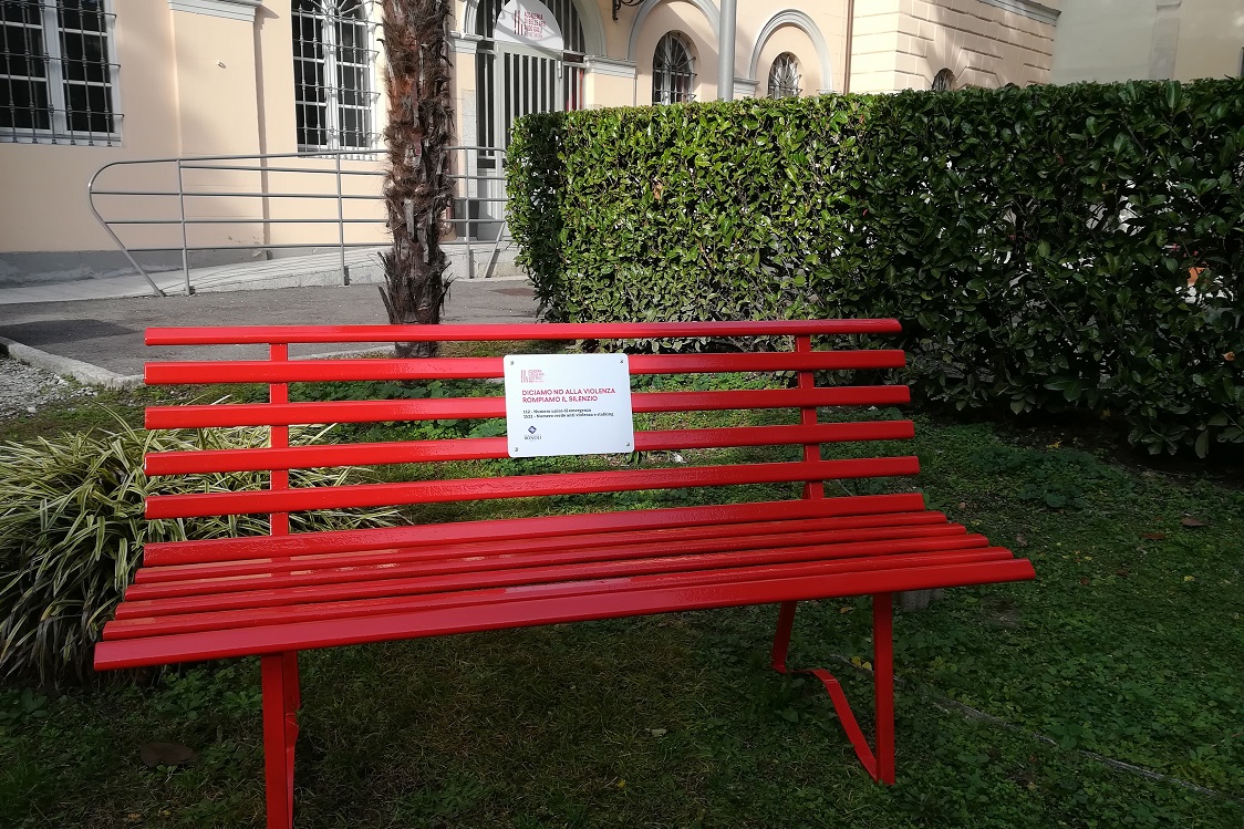 Le panchine rosse nelle sedi IED: “Diciamo no alla violenza. rompiamo il silenzio”