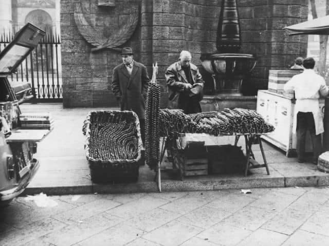 Tipico cibo della Fiera degli Oh Bej Oh Bej erano i firòn: castagne affumicate al forno, bagnate di vino bianco e infilate in lunghi spaghi.