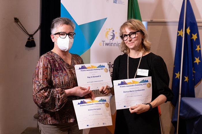Un riconoscimento è stato assegnato per la categoria Scuola dell’Infanzia al progetto “Pay it forward 2” realizzato dalle insegnanti Bianca Maria Gambarotto ed Enrica Ferrazzini dell’Istituto Comprensivo “G. Galilei” di Busto Arsizio, Varese. Le docenti hanno collaborato con altre scuole di: Spagna, Turchia, Croazia, Italia, Lettonia, Gran Bretagna, Romania, Polonia, Grecia, Ucraina per promuovere la sensibilizzazione di bambini piccoli al tema dei cambiamenti climatici. Gli alunni di ciascun istituto sono stati impegnati in alcune sfide che ponevano come risultato un minor impatto di ognuno sull’ambiente. Sono stati presi in esame cinque questioni climatiche: la protezione della natura, prendere coscienza dell’aria, l’osservazione dei mari, la costruzione di un mondo senza rifiuti. Alunni e docenti hanno condiviso informazioni per far conoscere le proprie realtà territoriali. La riflessione sulla similarità delle proprie realtà ha unito i piccoli allievi nella ricerca e individuazione di soluzioni comuni. Sono stati adottati metodi e tecniche pedagogiche innovative, avendo cura del contesto e dell’età dei piccoli. Gli alunni sono stati impegnati in attività creative che hanno stimolato in loro l’interesse per i temi ambientali e la conoscenza interculturale. È stato promosso un uso adeguato degli strumenti digitali e un coinvolgimento attivo di tutta la comunità educante e del territorio.
