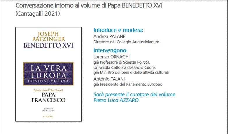 Collegio Augustinianum – 18 Marzo- “LA VERA EUROPA Identità e missione” conversazione intorno al volume di Papa Benedetto XVI