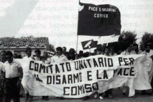 A Comiso, cittadina di 30mila abitanti, la leggenda recita che il locale Comitato unitario per il disarmo e la pace (Cudip), assimilabile ad una sezione di paese Pci, riuscisse ad organizzare numerose manifestazioni, i cui convenuti della galassia pacifista si concentravano nell’estremo angolo meridionale della Trinacria, in numeri tra 70mila e 100mila. C’erano, allietati dalla musica degli immancabili IntiIllimani, i Medici per la Pace (ricordano qualcuno?),letterati, premi Nobel, femministe organizzate, gli intellettuali della Marcia Milano Comiso, i Valdesi, cooperative sparse, l’International meeting against Cruise, gli amministratori di Vittoria, gli anarchici, gruppi ecologici indipendenti, associazioni di cittadini, comunità religiose, classi scolastiche, contadini, commercianti, tanti bambini, i sindacati e singoli comunisti di spessore, come la Castellina ed il fu La Torre, allora segretario regionale PCI, perché l’appoggio del Partito, indispensabile, era discreto ed a scomparsa, minore di quello impetuoso del presidente Pertini. La posizione ufficiale per la stampa recitava, Non abbiamo mai creduto nelle azioni dirette dei pacifisti, neanche quando bloccavano i cancelli della base. Il fondatore locale del Cudip più tardi venne espulso dal Pci. Nondimeno, guardando oggi allo stato della viabilità della Sicilia, pensando a cosa dovesse essere 40 anni fa, si osserva la strada provinciale che collega Catania a Comiso. Ci si chiede quale pianificazione e quali risorse prevedesse l’arrivo della formidabile forza d’urto di decine di migliaia di persone e famiglie fino alle coste meridionali sicule. Per farla arrivare per tempo in estate, la programmazione era stata almeno invernale. Oppure l’ingenuo e spontaneo moto popolare, in mesi strappati a lavoro e passioni, con i propri risparmi, aveva condotto le folle su auto, moto, furgoni, pullman, in autostop su camion di autotrasportatori di ovini, maiali, frutta e verdura fino a fare blocco agli automezzi militari ed alle macchine edili.
