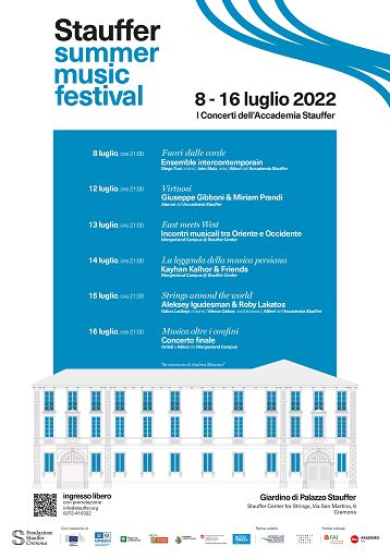Al via a Cremona la prima edizione dello Stauffer Summer Music Festival , la nuova manifestazione musicale estiva organizzata dalla Fondazione Stauffer presso il Giardino di Palazzo Stauffer, sede dello Stauffer Center for Strings , il primo centro musicale internazionale per l’alta formazione, la ricerca, la composizione, la produzione, il management e l’innovazione, interamente dedicato agli strumenti ad arco.