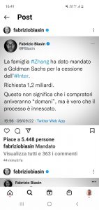 Pubblichiamo un tweet del massimo esperto di Inter, il giornalista Fabrizio Biasin.