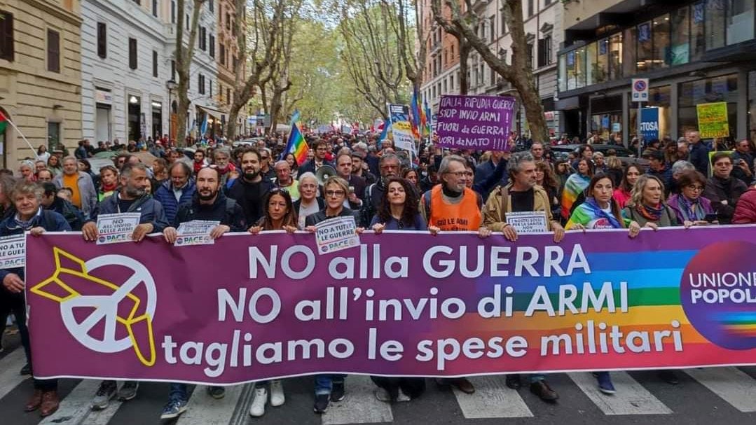 – A Roma, racconta Il Giornale “La manifestazione per la pace in corso a Roma conferma tutte le ipotesi delle ultime settimane: è pacifismo da salotto, senza proposte e senza idee, ma con tante contraddizioni. Giuseppe Conte presente e accolto da una star dai suoi ammiratori, tanti esponenti Pd e della sinistra più o meno estrema: le parole sono sempre le stesse, cessate il fuoco. Ma i colori gialloblu dell’Ucraina non si vedono granché, anzi, non sono mancati gli stendardi dedicati a Mosca.I pacifisti – o pacifinti – hanno sfoggiato bandiere, striscioni e cori di ogni tipo. Come già evidenziato in precedenza, non c’è traccia di bandiere ucraine. Gli stendardi russi invece non sono mancati. Così come non sono risultati assenti i soliti cori contro la Nato e dunque contro gli Stati Uniti. C’è chi ha colto l’occasione per attaccare il governo, a partire dal premier Meloni” In primo piano Rifondazione Comunista
