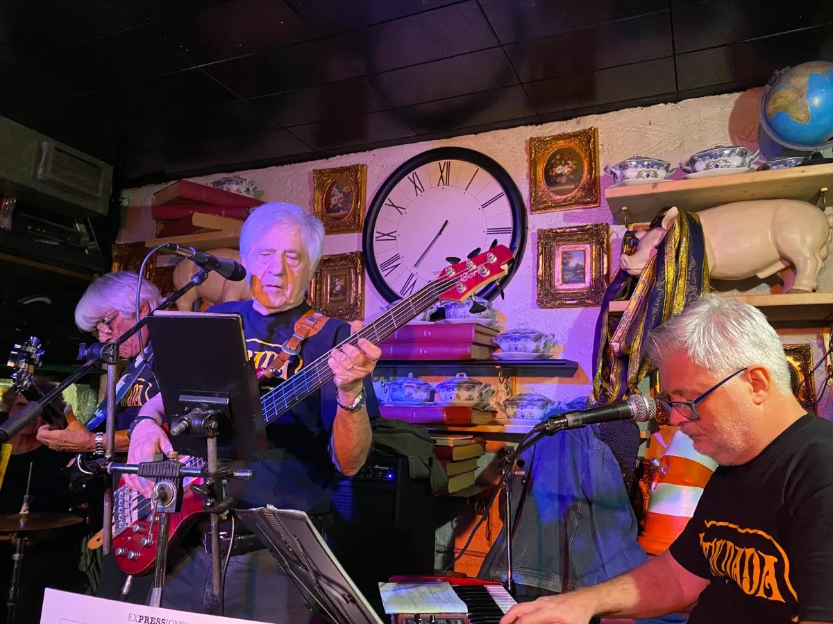 Ancora Blues con il gruppo di CHE MUSICA A MILANO con Viki Ferrara (batteria e voce), Giorgio Fazzini (basso e voce), Vittore Andreotti (tastiere), Gilberto Ziglioli (chitarra). New Dada.