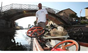 Nel 2000 Simone toma da New York, dove ha trascorso qualche anno come personal trainer presso una delle 14 famiglie più ricche degli States. E’ un atleta nuotatore e nel 2015 diventa insegnante di canoa presso la Canottieri San Cristoforo. «I corsisti vedendomi raccogliere qualche bottiglietta durante le lezioni, hanno deciso di aiutarmi», spiega Simone. «Durante la prima asciutta del naviglio loro stessi mi hanno chiesto di poter partecipare in maniera speciale alla pulizia. Così ho capito che avrei potuto creare una realtà che coinvolgesse più persone». Questione di un attimo. Simone crea su Facebook la pagina (oggi famosissima in città) “Gli angeli dei Navigli” dove racconta attraverso foto e post tutti gli interventi di pulizia urbani fatti sul territorio. E i seguaci crescono in maniera esponenziale. La loro filosofia è fare bene per stare bene, una sorta di “resilienza urbana”. Le foto più di tutto raccontano la grande attività del gruppo. E le continue e inaspettate scoperte. Può essere la bicicletta appena pescata o il tappeto di cannucce che si nasconde sul fondale e che evidentemente vengono date ai ragazzi nelle notti di festa nonostante siano di plastica e fuorilegge dal 14 gennaio 2022. Tra i reperti recuperati dagli Angeli, ci sono anche bidoni, fustini di plastica e carrelli della spesa. Simone racconta di quella volta in cui ha tirato fuori dalle acque una barca che era stata rubata, «forse ci volevano fare un giro». Era la stessa utilizzata nel film di RenatoPozzetto «Il ragazzo di campagna» quando l’attore si butta nel naviglio con l’intento di suicidarsi ma atterra sulla barca in questione. «Non è stato facile tirarla fuori», fa sapere Simone. Che comunque nella sua lunga carriera ha estratto oltre 900 bici, soprattutto di bike sharing. Proprio venerdì scorso ha toccato quota 901. Praticamente un record.”