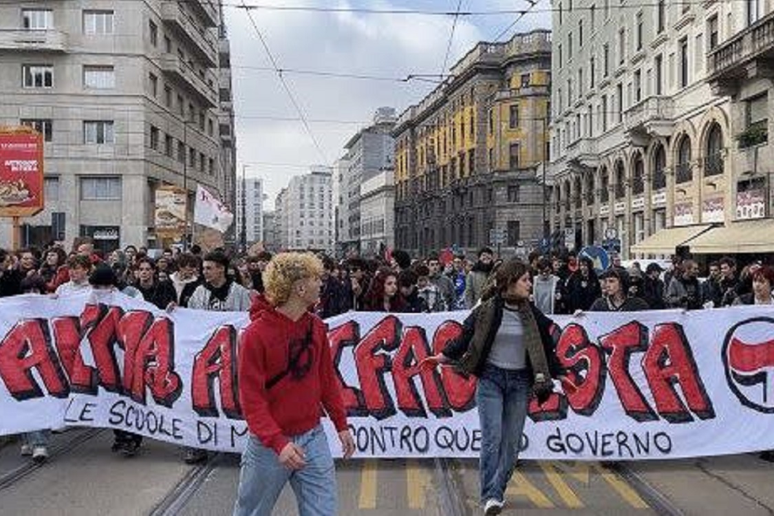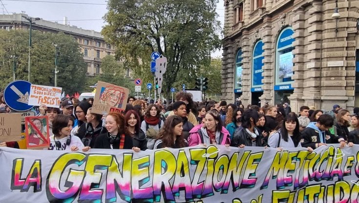 ‘Generazione meticcia e queer in lotta per il futuro’ è lo striscione che ha aperto il corteo studentesco del ‘No Meloni day’ a Milano partito da largo Cairoli ieri mattina poco prima delle dieci alla volta di corso Venezia con circa mille partecipanti.