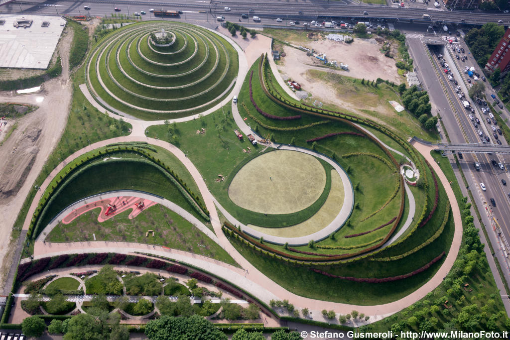 Tra queste, la collinetta che dà su Citylife, un percorso a spirale che termina in una vetta panoramica, dove trova posto una scultura contemporanea.