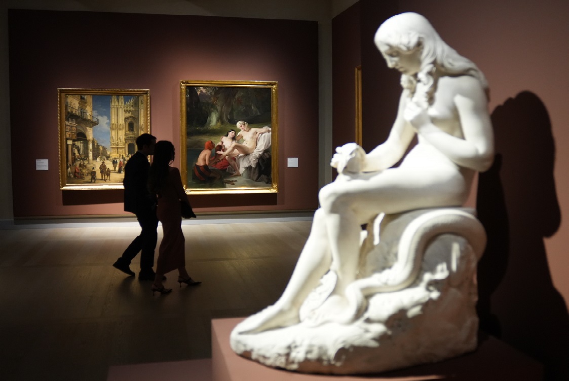 La mostra può essere l’occasione per originali approfondimenti e per una riconsiderazione nei secoli di questo fenomeno attraverso l’analisi di personaggi che hanno segnato in modo incisivo la storia del collezionismo e del gusto, come Cosimo e Lorenzo de’ Medici, le famiglie Giustiniani e Torlonia, Enrico Mylius e, nell’area mitteleuropea, Moritz von Fries, Johann Heinrich Wilhelm Wagener, Nathaniel Mayer Rothschild, e in America John Pierpont Morgan. Attraverso i loro ritratti, le testimonianze della loro eccezionale vicenda biografica, spesso ricca di importanti iniziative umanitarie, e soprattutto grazie ad opere d’arte esemplari delle loro raccolte, è possibile rievocare la loro figura e le scelte collezionistiche. A testimonianza del gusto e delle scelte collezionistiche di questi personaggi la mostra presenta una grande varietà di generi artistici: dipinti, sculture, disegni, incisioni, bronzetti, medaglie e preziosi cammei. Tra le opere di maggior rilievo si segnalano il Putto con delfino del Verrocchio, la Crocifissione di Annibale Carracci, la Madonna della scala di Michelangelo, il San Gerolamo Penitente di Caravaggio, il Ritratto del conte Josef Johann von Fries di Angelika Kauffmann, il Ritratto di Everhard Jabach di Antoon van Dyck, La fuga di Bianca Cappello da Venezia di Francesco Hayez e l’inedita Natura morta di Giorgio Morandi. Il percorso espositivo si articola in undici sezioni, ciascuna dedicata ad una figura di banchiere. La sezione finale ricorda la luminosa figura del banchiere “umanista” Raffaele Mattioli, protagonista della rinascita economica e culturale nell’Italia del difficile dopoguerra. Grande ammiratore di Giacomo Manzù, Giorgio Morandi e Renato Guttuso, le sue prestigiose acquisizioni per la Banca Commerciale e il suo impegno nella grande editoria hanno costituito uno straordinario esempio, a cui il “Progetto Cultura”, il programma pluriennale delle iniziative culturali di Intesa Sanpaolo, ha dato continuità e conferma. Il catalogo della mostra è realizzato da Edizioni Gallerie d’Italia |Skira.