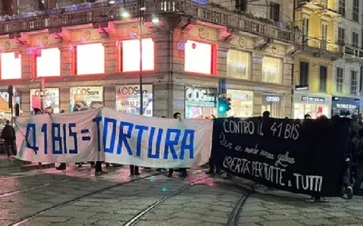 ‘Contro il 41 bis, per un mondo senza galere, libertà per tutti e tutte’ si leggeva sugli striscioni del corteo. Dopo un’ora di presidio statico, davanti alla Stazione Centrale di Milano, in solidarietà ad Alfredo Cospito, i manifestanti – circa duecento persone – si sono mossi, imboccando via Vitruvio, al grido ‘fuori tutti dalle galere, libertà per Alfredo’. Alla testa del corteo non autorizzato campeggiava lo striscione ‘Contro il 41 bis. Per un mondo senza galere, libertà per tutte e tutti’. Tra i cori inneggianti durante la manifestazione, che non è stata preannunciata in Questura, ‘isolamento tortura e lutto, pagherete caro, pagherete tutto’.