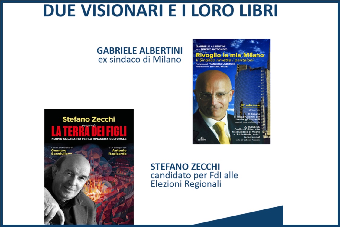 Una visione del futuro per la Lombardia e Milano nel dialogo tra l’ex sindaco della città, Gabriele Albertini e il suo storico assessore alla Cultura Stefano Zecchi, candidato nelle liste di Fratelli d’Italia alle elezioni regionali della Lombardia a Milano e Provincia, moderati da Gianluca Mazzini, vicedirettore di News Mediaset.