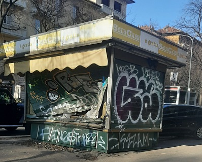L’edicola di Corso Ventidue Marzo angolo Via Fratelli Bronzetti è ormai chiusa da un’anno e da tale data risulta abbandonata e senza nessuna attività commerciale per la quale è stata posizionata.Lo stato di abbandono in cui versa tale area è un continuo punto di degrado per i cittadini, per la via, per le attività commerciali e per la zona.