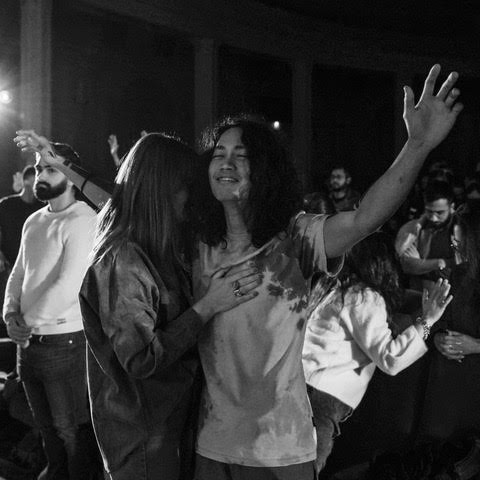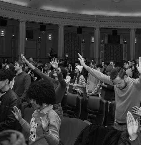 A Milano c’è una band fluida, la formazione cambia ogni domenica, il clima in sala è assai caldo, da stadio, non c’è un altare, nulla che faccia riferimento apparentemente a una funzione religiosa… c’è un palco super tecnologico, il laico “fronte del palco”…. con batteria e tastiere…poi, iniziano le canzoni, gli accendini illuminano a sorpresa il buio della sala, il mix audio controllato dallo staff è perfetto, le braccia dei presenti si alzano al cielo come nelle assemblee carismatiche, le labbra sillabano i testi delle canzoni: è il workship.