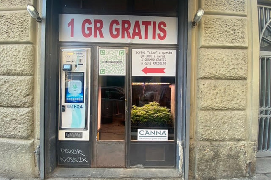 Nell’unica vetrina viene esposta , cosi pare, una piccola piantagione di cannabis , coltivata a chilometro zero ed offerta in outlet : un grammo gratis in omaggio. Tutti  i passanti si chiedono: è stato liberalizzato il fumo? La canna è ora libera? .Appositi cartelli , pare  abusivi, affissi ai segnali stradali, pubblicizzano  il negozio  e indirizzano studenti e passanti alla vetrina dove è esposta la piccola piantagione riscaldata artificialmente. Si compra e via, verso il parco.