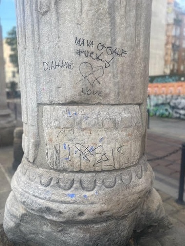 La casa del Manzoni sporcata da sgorbi: ma anche le storiche Colonne di San Lorenzo e area intorno alla basilica di San Lorenzo, compresi muri della antichissima chiesa . Flycat, il più famoso artista italiano di graffitismo, non ci sta e lancia un appello ai giovanissimi “bombolettari”” che cercano visibilità sporcando i monumenti con le “tag”, ovvero degli sgorbi indecifrabili. Dopo essere passato per le colonne di san Lorenzo, deturpate da scritte ingiuriose e bestemmie, Flycat non ha esitato,” Non chiamiamoli graffitari: chi lascia scritte sulle Colonne di san Lorenzo o sulla vicina basilica , e persino sul murale di Corso Ticinese dedicato a Falcone e Borsellino non ha “Mi definisco un nuovo scriba” dice di se Flycat.” Ho pensato a Guerre stellari e alla astronave che guidava Luke Skywalker per l’ultimo mio lavoro, affrescare le pareti d CE04. Per volare nelle atmosfere metropolitane.” CEO04 non è un muro, ma uno scooter elettrico presentato dalla BMW all’ultimo salone.” (Il suo manifesto artistico nel video https://www.youtube.com/watch?v=dLKZeFolmSw). Oggi il suo appello ai giovanissimi che deturpano e sporcano le Colonne. Verrà ascoltato? .