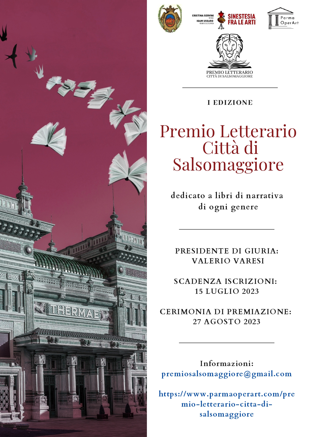L’Associazione Parma OperArt APS, con il patrocinio del Comune di Salsomaggiore-Terme, annuncia la prima edizione del “Premio Letterario Città di Salsomaggiore Terme” in occasione del Centenario delle Terme Lorenzo Berzieri ed incluso in tutte le iniziative 2023 di “Sinestesia fra le arti”.