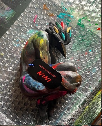 Con Kafka 9.0 in the box il protagonista di Kafka 9.0 esce dalla tela e diventa statua, le pennellate dell’artista divengono tangibili. E da installazione l’opera si trasforma in elemento sensoriale traducendo l’esperienza di NINI al Burning Man in materia: le statue in edizione limitata sono infatti disponibili per l’acquisto e parte del ricavato sarà devoluto alla Fondazione Don Gnocchi, ente non profit impegnato da oltre 70 anni nell’accoglienza di bambini e ragazzi con ogni forma di disabilità, nella cura e riabilitazione di pazienti di ogni età con gravi patologie degenerative e nell’assistenza di anziani non autosufficienti e malati oncologici in fase terminale.