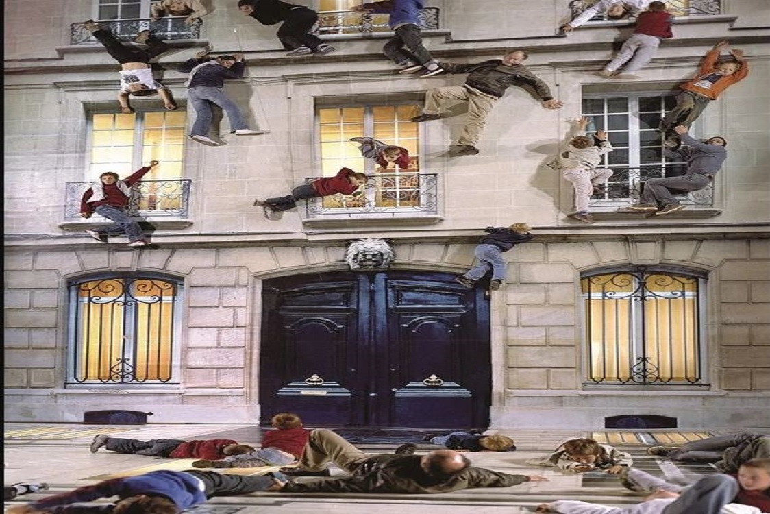 Ogni opera di Leandro Erlich apre una finestra sul mondo sensibile svelando gli inganni visivi a cui può essere soggetta la mente, aprendo nuovi orizzonti e interrogativi. Suscitare stupore, meraviglia, curiosità, ma anche domande, dubbi, emozioni è l’obiettivo del fare artistico di Erlich, ed è proprio la partecipazione dello spettatore a completare l’opera. “Ci interroghiamo costantemente sui termini della realtà”, afferma Erlich, e come nel mito della caverna, l’errore in cui si rischia sempre di incorrere è quello di scambiare il mondo sensibile per l’unica realtà possibile. Andare al di là di una percezione vuol dire entrare nel campo del pensiero, della riflessione, dell’arte. Il percorso espositivo inizia nel Cortile di Palazzo Reale, dove è allestita la monumentale installazione site-specific “Bâtiment”, creata nel 2004 per la Nuit Blanche di Parigi. Da allora è stata presentata in tutto il mondo, adattandosi alle caratteristiche dell’architettura locale. Il meccanismo espositivo è sempre lo stesso: appoggiata orizzontalmente a terra è posizionata la riproduzione della facciata di un edificio, con balconi, nicchie, fregi, tettoie. I visitatori si “appendono” virtualmente alle decorazioni e un grande specchio inclinato a 45 gradi riflette l’immagine a terra su un piano verticale, dando l’illusione di una facciata reale e la sensazione che la legge di gravità non esista più.
