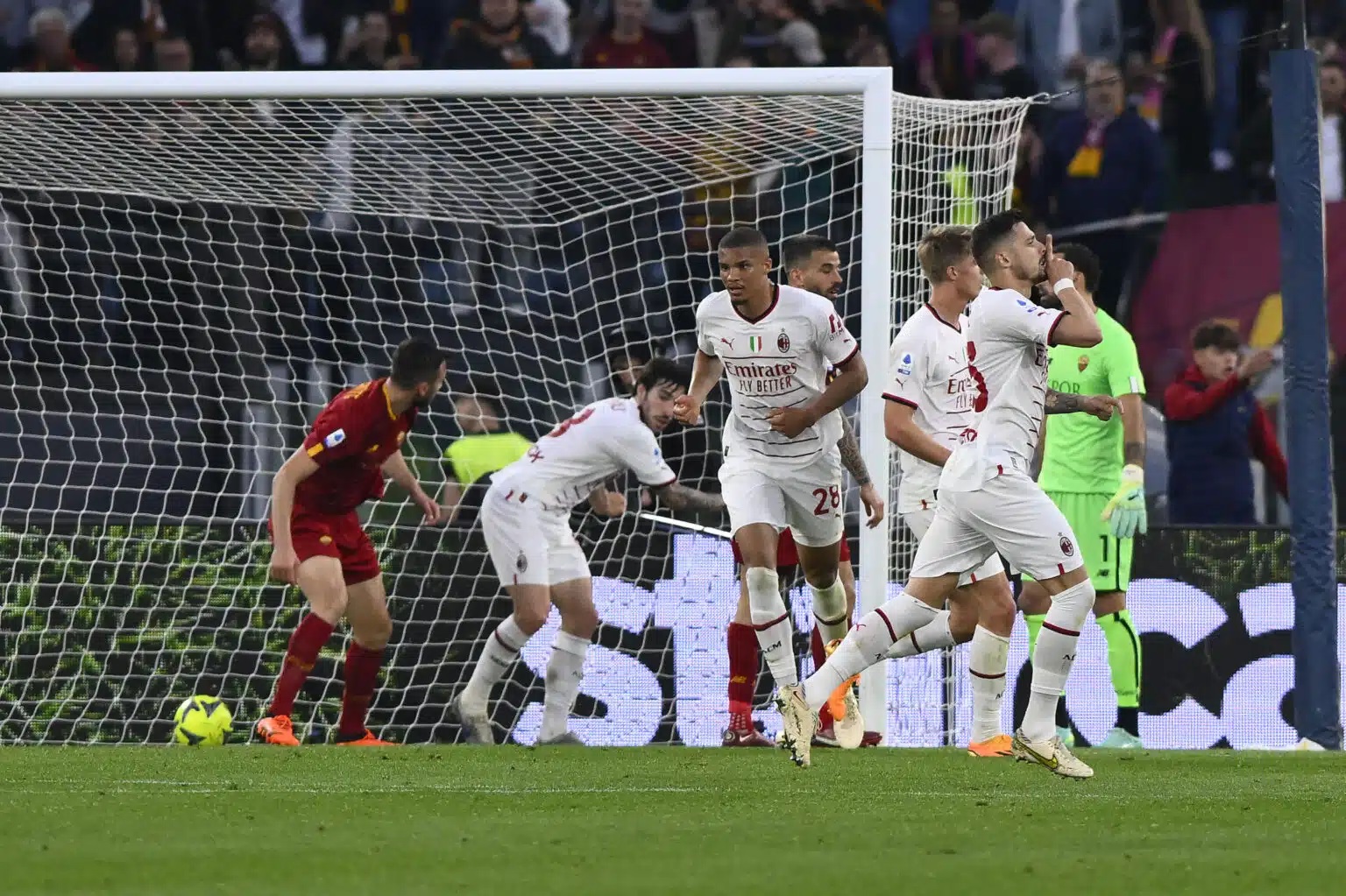 Nella ripresa il tema è più o meno lo stesso, mentre nel finale le squadre si allungano e si vedono diversi errori di impostazione. Proprio da una delle tante ripartenze nate negli ultimi minuti del match, la Roma trova la rete del vantaggio, effimero perché poi a tempo scaduto i rossoneri pareggiano, grazie al cross preciso al millimetro di Leao e alla zampata di Saelemaekers. Alla fine si dividono una posta che non era nelle aspettative di nessuna delle due, ma piuttosto di altre (Inter e Atalanta) che dietro potrebbero avvantaggiarsene rosicchiando due punti sia ai rossoneri che ai giallorossi.