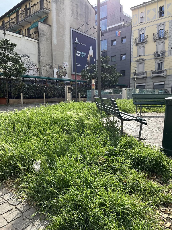 Mi rivolgo a lei per segnalare la inaccettabile situazione del verde di tre grandi aiuole in via Pirelli, a due passi dalla sede del Consiglio Regionale lombardo, e in una piazzetta in via Cornalia, angolo via Adda, ai piedi dei tanto celebrati grattacieli di Porta Nuova. Forasacchi altissimi, mai sfalciati, e alberi morti e sofferenti fanno da cornice a infestanti, panchine rotte e altro degrado urbano assortito (ho decine di foto oltre a queste allegate). In questo contesto anche AMSA fatica a tenere un minimo di pulizia e igiene.