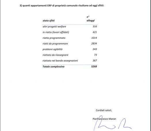 Si allega risposta dell’Assessore Maran all’interrogazione consiliare