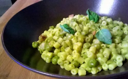 Esecuzione: Scongelatele i piselli e poneteli in una padella antiaderente con il porro affettato sottile, il ½ dado ed il vino bianco. Salate, coprite e fate cuocere a fiamma bassa, rifondendo con dell’acqua. Scolate i ditali al dente e versateli in una zuppiera . Unite i piselli, aggiungete l’olio a crudo e mescolate bene.